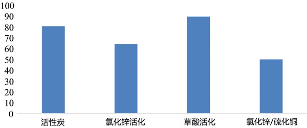 原材料用蒸餾水洗滌數(shù)次,然后干燥24小時,然后將原料通過電動研磨機獲得的粉末。將100g樣品與1L草酸(20%w/w)一起回流180分鐘,然后讓混合物在室溫下冷卻。將出售的部分通過過濾分離,以除去任何過量的草酸,將該固體與250mL/2M鹽酸一起加熱90分鐘。然后,對新混合物進行多次過濾并用蒸餾水沖洗以得到干凈的固體,以除去樣品中存在的任何水分,將固體在130℃的烘箱中放置30小時。最后,為保證樣品的均勻性,將干燥的固體研磨過篩,得到草酸活化的活性炭粉末。對含有100g原料和1L20%w/w氯化鋅酸性溶液的混合物以及100g原料和20%w/w氯化鋅酸性溶液和50g銅的混合物重復相同的程序。得到的氯化鋅活化的活性炭和氯化鋅/硫化銅活化的活性炭?傆嬋N活化方式制成的活性炭吸附劑。