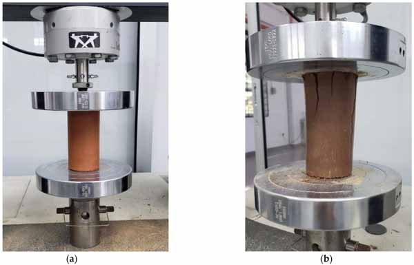 圖2:UCS測試(a)壓縮前和(b)壓縮后。