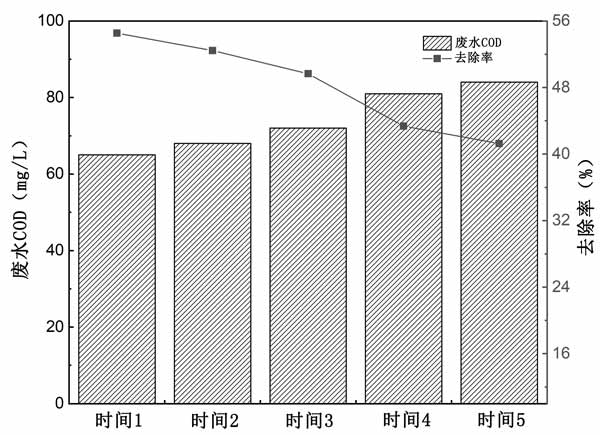 為了評(píng)估活性炭的可重復(fù)使用性,對(duì)活性炭進(jìn)行了吸附-解吸實(shí)驗(yàn)。經(jīng)過(guò)四個(gè)吸附-解吸循環(huán)后,活性炭吸附對(duì)焦化廢水中COD的吸附效率僅降低了約10%(圖3),表明活性炭具有良好的可重復(fù)使用性。此外,使用NaOH作為再生劑的方法具有成本效益高的優(yōu)點(diǎn)。總之,這些表明本研究中生產(chǎn)的活性炭在實(shí)際廢水處理中具有巨大的應(yīng)用潛力。
