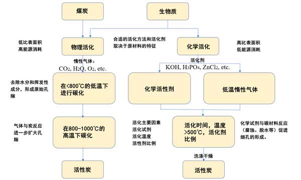 圖2:通過物理和化學(xué)活化生產(chǎn)活性炭。