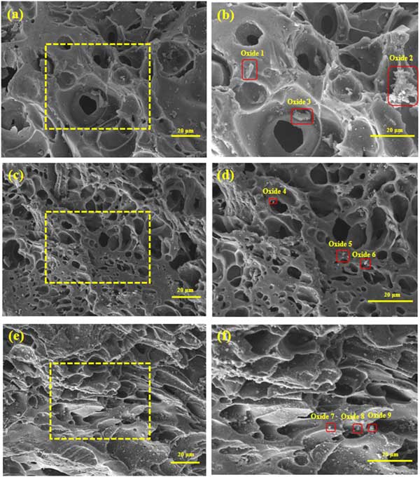 圖1顯示了活性炭載錳催化劑的表面微觀結(jié)構(gòu)。在圖1a和b中,活性炭載錳5催化劑表面孔隙分布不均勻,周圍有少量顆粒。當(dāng)Mn負(fù)載量為5%時,可以在催化劑指示的塊狀附著物中檢測到少量Mn。這表明催化劑成功負(fù)載Mn,但是,它的含量很低。圖1(c)和(d)中,活性炭載錳7催化劑表面光滑,孔結(jié)構(gòu)發(fā)達(dá),孔道明顯增加,表面顆粒分布均勻。這有助于催化劑吸附氣體;钚蕴枯d錳7催化劑成功負(fù)載了中等含量的Mn元素,可以很好地改性活性炭。這些發(fā)現(xiàn)與圖3中脫硝曲線的結(jié)果一致。在圖1e和f中,活性炭載錳9催化劑表面粗糙,大小不一的孔隙分布不均勻,顆粒在表面局部堆積。這些因素堵塞了氣孔,抑制了脫硝。當(dāng)Mn負(fù)載量為9%時,在催化劑表面檢測到大量附著物。高M(jìn)n含量表明Mn的過量負(fù)載可能導(dǎo)致催化劑表面21上的孔隙積累和堵塞(圖1e和f)。這可能是NO轉(zhuǎn)化率因負(fù)載過大而降低的原因之一。