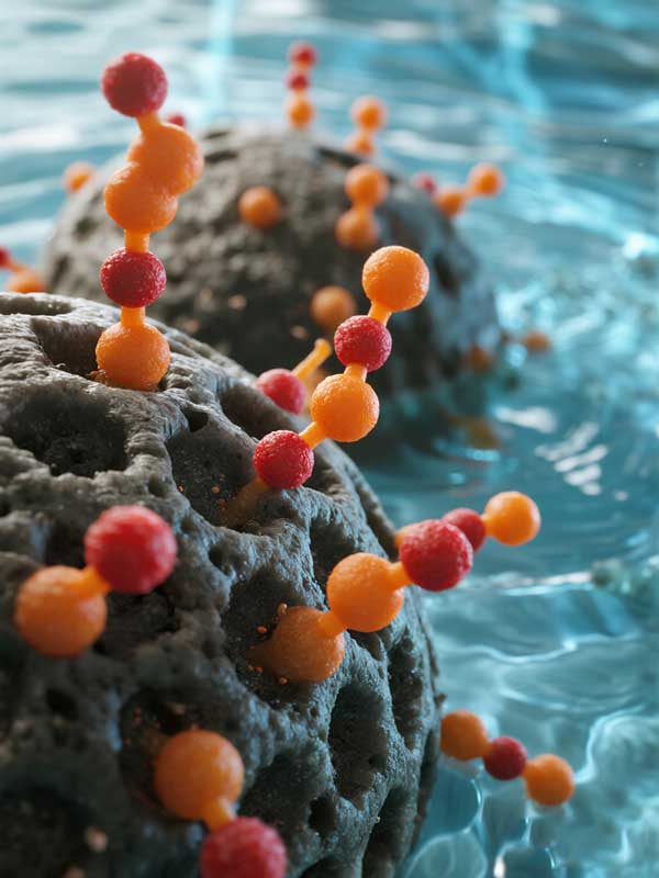 想象一下,活性炭就像一個(gè)布滿無數(shù)微小孔洞和溝壑的超級(jí)海綿。當(dāng)含有PFAS的水流經(jīng)活性炭濾床時(shí),水中的PFAS分子會(huì)被這些巨大的表面積所產(chǎn)生的范德華力牢牢地“抓住”并固定在孔道內(nèi)。這個(gè)過程就像磁鐵吸附鐵屑一樣,PFAS分子從水中被分離出來,從而實(shí)現(xiàn)了水的凈化。
