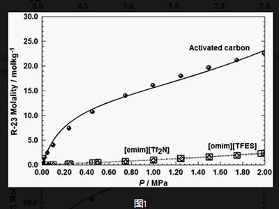 在活性炭上的吸附是選自顯著高于在離子液體中的溶解度 。在活性炭吸附的選自在2 MPa和298 K達(dá)到約22.7摩爾公斤−1而在離子液體的吸收達(dá)到約2.37摩爾公斤−1在2 MPa和298 K的活性炭具有一級(jí)吸附容量相對(duì)于離子液體。
