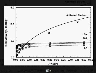 對(duì)選自在活性炭上的吸附是典型的I型行為根據(jù)IUPAC分類是完全可逆的。這是比較選自吸附在離子液體中的溶解度和分子篩活性炭相當(dāng)有趣,在我們以前的工作中發(fā)現(xiàn)。在活性炭上的吸附是選自顯著高于在離子液體中的溶解度)。圖1顯示了活性炭在2 MPa和298 K達(dá)到約22.7摩爾公斤−1吸附在離子液體的吸收達(dá)到約2.37摩爾公斤−1在2 MPa和298 K。與離子液體相比,活性炭的吸附量要大一個(gè)數(shù)量級(jí)。在活性炭吸附選自也比分子篩吸附完全不同。圖2顯示了在低壓力下的吸附選自(P<0.05 MPa)的活性炭是低于5A沸石吸附然而,隨著壓力的增加(0.1 > > >,將13x鈉Na、k-lsx > 5a >活性炭。