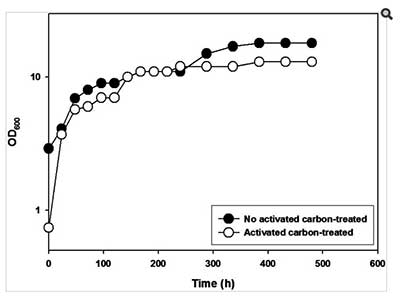 據(jù)報(bào)道,酸水解產(chǎn)物中的呋喃衍生物(糠醛和5-羥甲基糠醛)和酚類化合物是有毒的并且可以抑制生物乙醇生產(chǎn),在酸水解產(chǎn)物中發(fā)現(xiàn)約0.6-3.0g / l的水平。以前的報(bào)告回顧了酸性水解產(chǎn)物的治理。活性炭處理導(dǎo)致呋喃衍生物減少92%,5-羥甲基糠醛減少68%,酚類化合物總量減少約1.25-0.5克/ 升。通過活性炭處理從水解產(chǎn)物中去除有毒物質(zhì)是非?煽康。