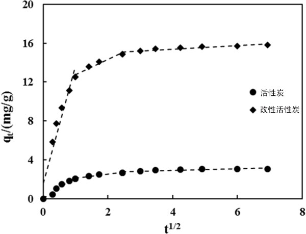 圖2:磺胺二甲嘧啶在活性炭上吸附的顆粒內(nèi)擴(kuò)散結(jié)果。