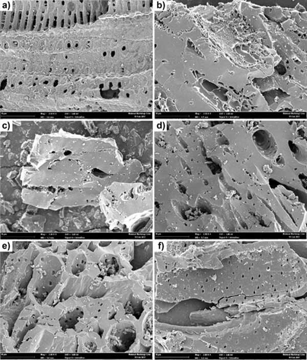 進(jìn)行SEM分析以觀察合成活性炭的形態(tài)和表面結(jié)構(gòu)。圖2顯示了新鮮的,即在吸附-解吸過程之前的活性炭樣品的SEM圖像;趫D2,它表明浸漬的活性炭的外表面在大孔中具有各種尺寸的裂縫,裂縫和一些顆粒。然后,使用連接到SEM儀器的EDX檢測器來估計(jì)活性炭樣品表面上的特定元素的量。