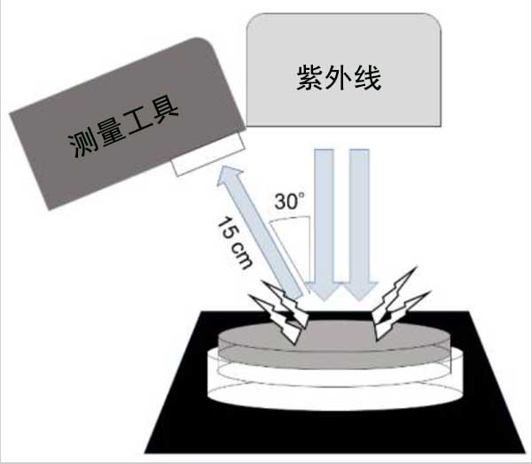圖2:在紫外線照射下測量光散射的程序。