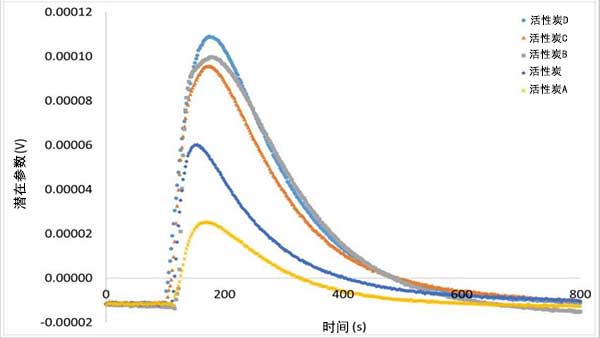 存在兩個參數(shù)之間的比例,因?yàn)榇嬖诳捎糜诜肿舆M(jìn)入的更大空間,這在吸附物和多孔結(jié)構(gòu)之間產(chǎn)生更大的相互作用。具有更高比表面積和更大相互作用的活性炭是炭D,由于吸附物和碳質(zhì)結(jié)構(gòu)之間的親和力,由于選擇性除去含氧基團(tuán)而產(chǎn)生更高的表面積并產(chǎn)生更高的浸入焓值;钚蕴緼具有最低的表面積值和較低的焓相互作用,因?yàn)楸砻嫜趸鶊F(tuán)降低了活性炭的可用空間以進(jìn)入己烷,并且由于其極性特征而產(chǎn)生與分子的較少相互作用。