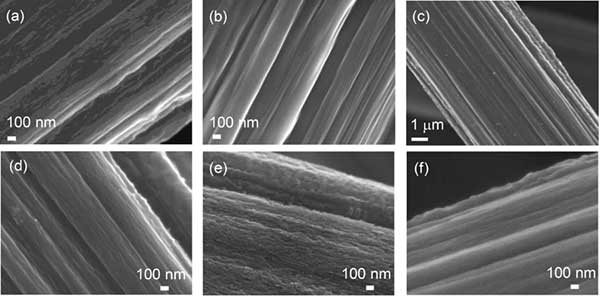 幾種活性炭的FESEM圖像顯示在圖1中。涂有錫酞菁的活性炭的表面形態(tài)與沒(méi)有涂層的活性炭相似;钚蕴吭550℃下熱氧化后,在表面上產(chǎn)生氧化錫納米顆粒。另外,活性炭上存在許多淺細(xì)長(zhǎng)凹痕,這是通過(guò)精細(xì)表面蝕刻產(chǎn)生的。雖然僅通過(guò)FESEM觀察很難清楚地證明這種表面結(jié)構(gòu)變化,但拉曼光譜和電化學(xué)測(cè)量可以顯示出如下所述的明顯差異。表面蝕刻的程度取決于熱氧化的溫度。隨著溫度的升高,表面變粗糙。應(yīng)注意,在每個(gè)處理溫度下在活性炭表面上均勻地獲得粗糙化。