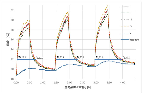 在分析曲線如圖2,圖3和圖4中,并收集結(jié)果,在一個溫度(22℃)中選擇,清楚地表明不同相變材料的影響活性炭中的量上的周期時間長度與發(fā)生個體樣品中的熱交換過程。相對于溫度傳感器的更高的質(zhì)量和熱容量,即使吸附的相變材料的量很小,也可以看到處理時間的差異。當(dāng)與參比樣品(I),沒有相變材料,總的冷卻和加熱時間的所有樣品與相變材料的不同水平長。對于樣品V,此時間延長了7.5%,對于樣品IV,延長了5.2%,對于III,延長了2.4%,對于樣品II(未活化的活性炭),僅延長了0.2%。
