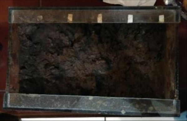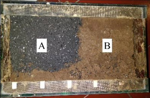 這項(xiàng)研究是在小型土壤上進(jìn)行的,然后將其注入含有重金屬的礦山廢料中。使用27.5厘米x10厘米x20厘米的水族箱制作土壤模型,每5厘米要釘一次。該釘塞提供了空間,并使重金屬廢物更容易吸收到土壤中。每天注入多達(dá)5毫升的重金屬廢物,直到其積累多達(dá)200毫升。然后將土壤模型分為兩個(gè)區(qū)域:區(qū)域A和區(qū)域B。區(qū)域A的表層土壤被施加了活性炭,而區(qū)域B被留下(圖2和圖3)。每天都用蒸餾水稀釋微型土壤,以保持土壤濕度。