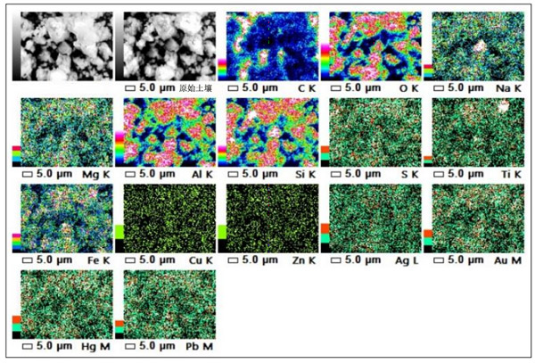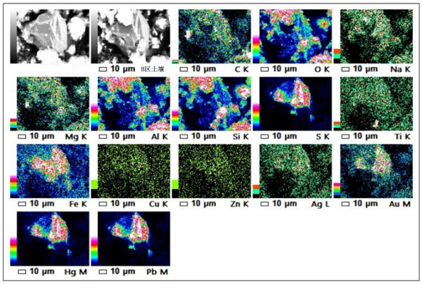 圖6:B區(qū)土壤樣品(被重金屬廢物污染)的元素圖。