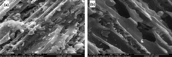 圖1:活性炭表面圖像a吸附前b吸附后。