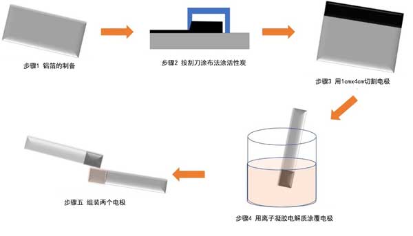 圖1:通過(guò)刮刀法制備基于活性炭的全固態(tài)超級(jí)電容器。