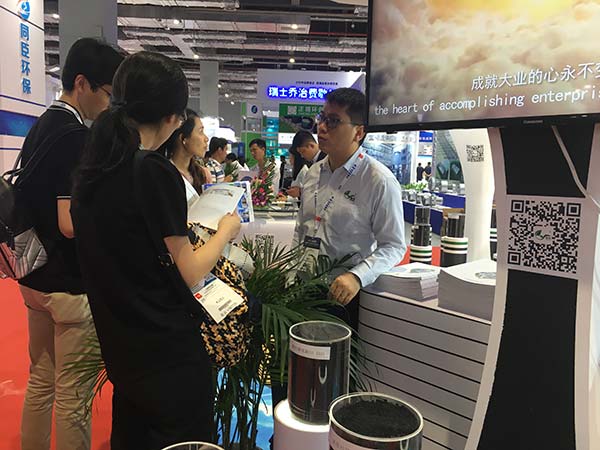 在為期三天的展會中,來自各個國家、各個行業(yè)的專家在韓研活性炭的展館交流探討活性炭相關技術問題。